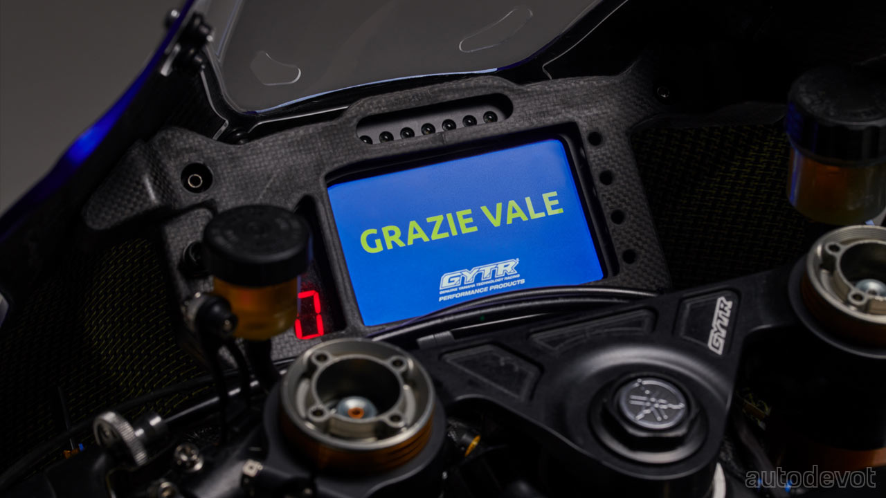 The R1 GYTR VR46 Tribute also sports upcoming 2022 GYTR-spec parts and unique features that are all a direct result of Yamaha’s WorldSBK development, which helped the company achieve the 2021 WorldSBK Triple Crown, culminating in the highest spec R1 GYTR ever produced for track day usage.