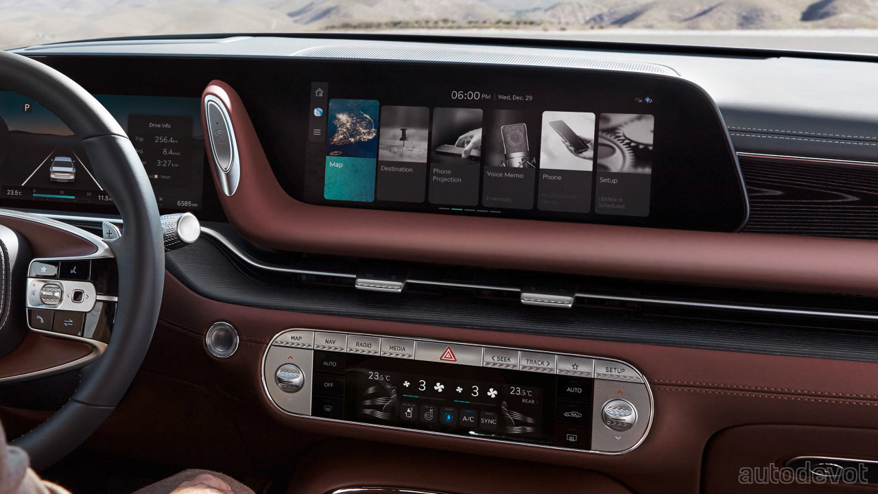 Other key highlights include a 23-speaker Bang & Olufsen audio system; a fragrance dispenser; ‘ergo-relaxing’ seats; a speaker on the driver’s seat headrest so that guide/warning sounds can be heard only by the driver; 10.2-inch touchscreens for the rear occupants, and an 8-inch rear armrest touchscreen. Each ‘ergo-relaxing’ seat features 10 air cells on the seatback and two air cells on the cushion, supporting four modes of body massage, including full-body, waist, pelvis, and upper body, with three options for massage duration and strength. The new G90 also boasts Genesis’ quietest ride yet, with the standard ANC-R (Active Noise Control-Road) system.