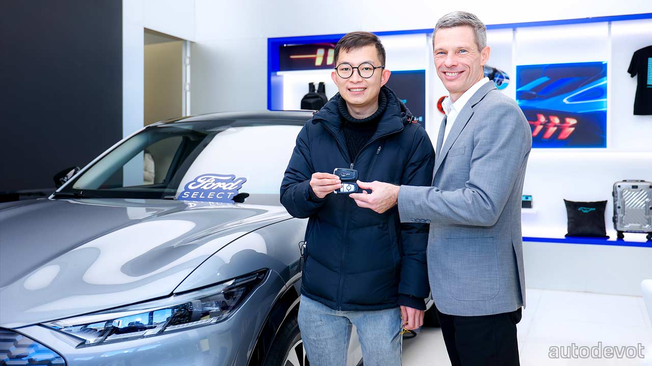 Ford has commenced Mustang Mach-E deliveries in China, with the first unit delivered to Jin Zhang—who is an ad executive and apparently, also a Mustang fan. It’s not clear if he’s a fan of the pony car or this one; probably he’s just a fan of the Mustang brand. But anyway, the key was handed over to Mr. Zhang by Mark Kaufman, General Manager, Ford China BEV division.
