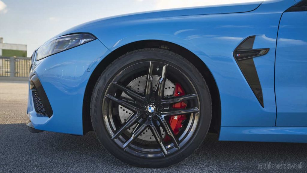 Don’t worry if you’re having trouble finding out the visual differences, because as mentioned, they are rather subtle. Speaking of which, on the front fascia of the regular 8 Series models, there’s a new kidney grille with U-bars—which are now illuminated as standard, and the M850i variants get a little M badge on the grille. Adaptive LED headlights come standard. The 840i, 840i xDrive and 840d xDrive models get M sports package as standard, which comes with aerodynamically optimized exterior elements. There are, of course, new 19- and 20-inch wheel designs, and four new colors: Skyscraper Grey metallic, San Remo Green metallic, M Portimao Blue metallic and Frozen Tanzanite Blue metallic. Also, the standard equipment now includes M sports brakes with calipers finished in blue.