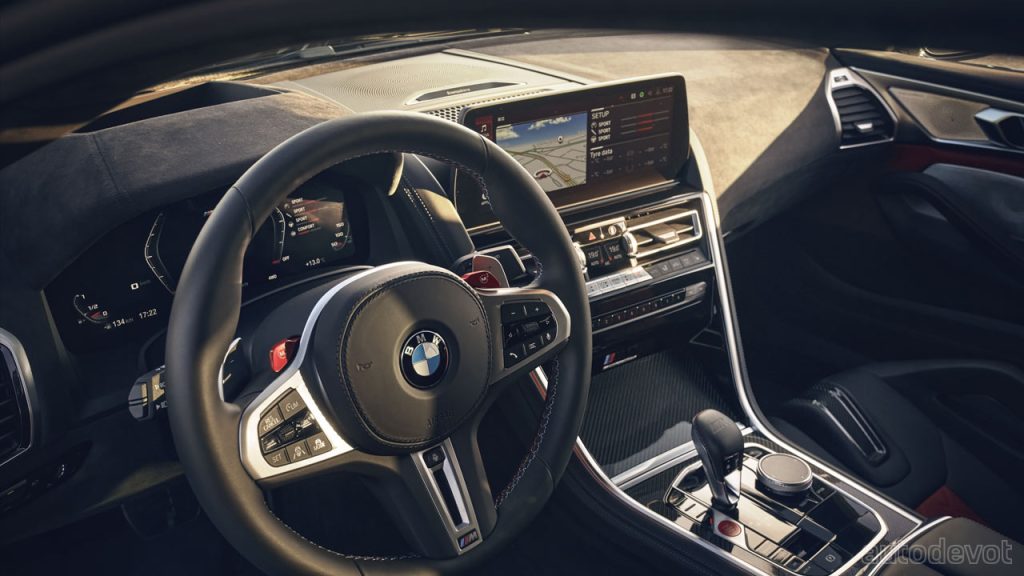 The refreshed cockpit features an upgraded BMW Live Cockpit Professional system where the central touchscreen has grown from 10.25- to 12.3-inches. The multifunction seats previously only standard in the M850i models, have been extended to the 6-cylinder models as well; their range of functions includes lumbar support and standard memory function for both driver’s and front passenger’s seats. The four-zone climate control which was optional on the 8 Series Gran Coupe is now standard. There are new seat and accent materials as well. The M models get new Merino leather & Alcantara combo upholstery, which can be specified in Black & Sakhir Orange color combo for both standard M Sport seats and the optional M Carbon bucket seats.