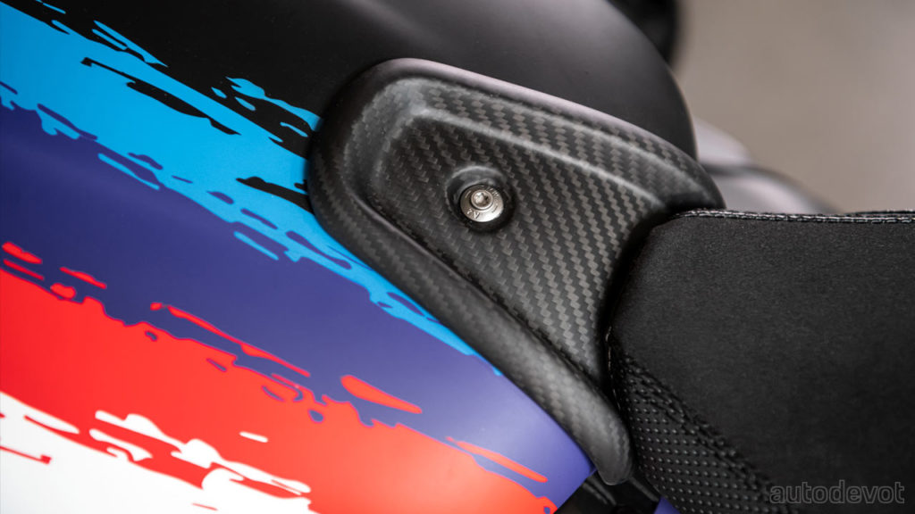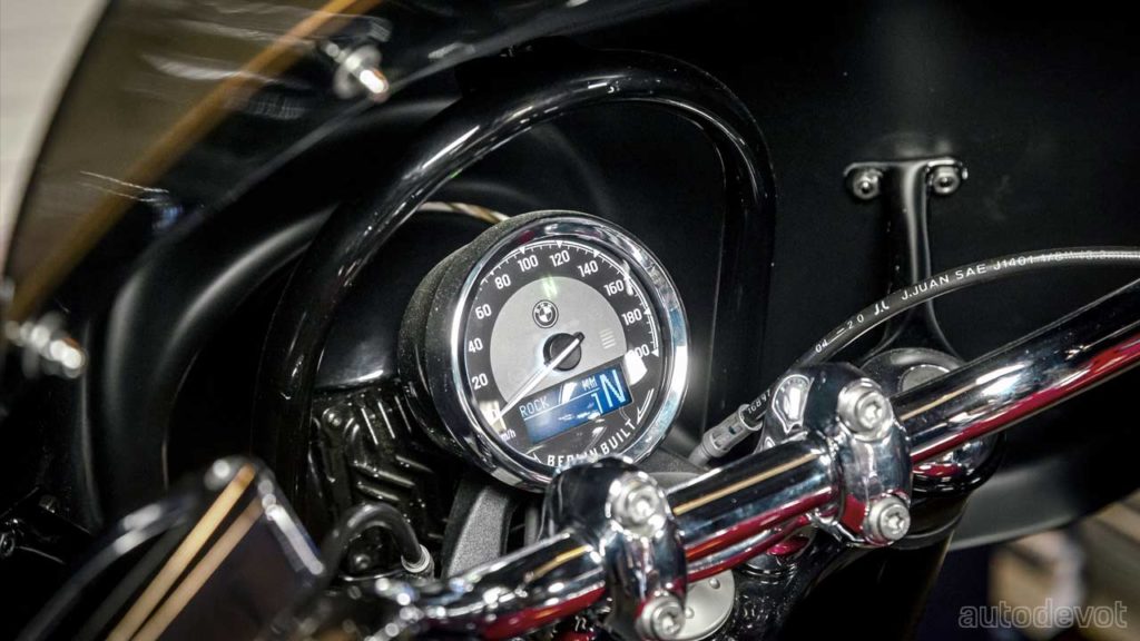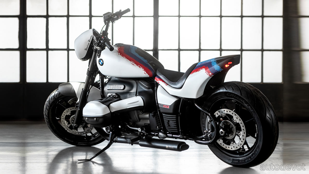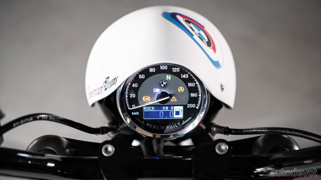 The custom bodywork with M-typical colors makes the R 18 M look like a different product altogether while retaining the retro-modern looks. American Dreams only did the assembly work. Elaboratorio supplied the fibreglass parts while Carbon Italy handled, well, carbon fibre details. The short exhaust pipes were supplied by Exhaust Revolution while the saddle was covered by L.R. Leather. The paintwork was entrusted to Dox Art Factory while Rizoma supplied mirrors, grips, and indicators.