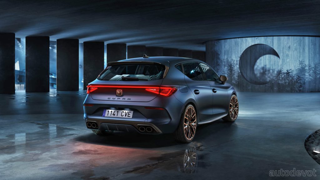No mechanical changes. The Leon VZ CUP will be available with all the powertrains the regular Cupra Leon offers, including a 245 hp 2.0L PHEV. The special edition enters production this week at the brand’s Martorell facilities, with first deliveries in March 2022.
