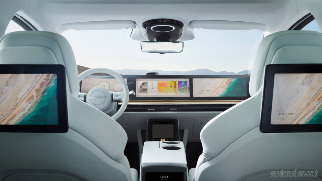 That’s right! the Vision-S 02 has got three rows inside; which means you already know at which car it is looking forward to battle with. The rest of the things are a déjà vu; the SUV has got the same displays and technology as the Vision-S sedan. These include “360 Reality Audio”, Time-of-Flight (ToF) sensors inside the car, and ADAS suite. In total, the car uses 40 sensors inside and outside, with most of ’em being Sony’s CMOS image sensors.
