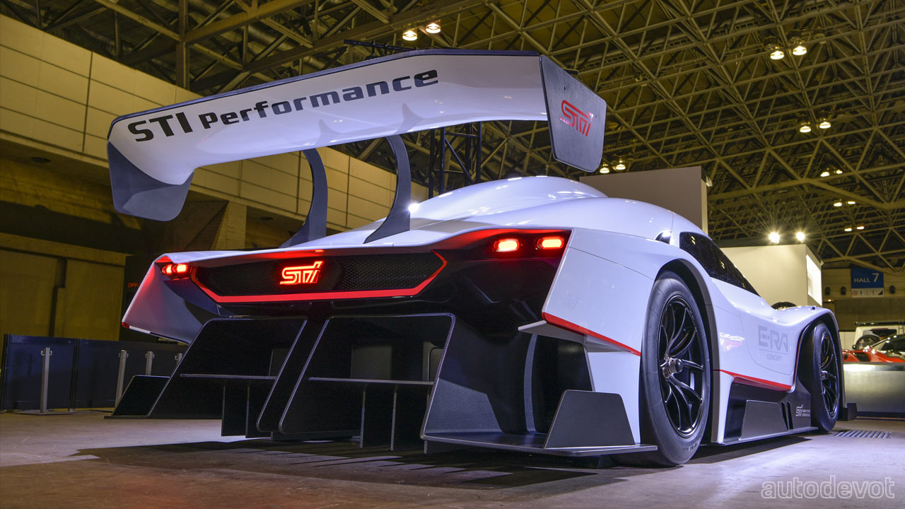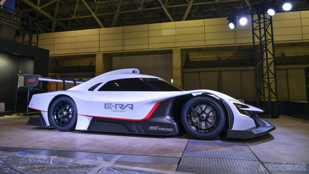 The first concept is this smiley-faced STI E-RA, an electric race car that might take part in the upcoming FIA Electric GT Championship (FIA E-GT). But prior to any of that, Subaru intends to achieve a Nürburgring lap time of 6 minutes and 40 seconds with this car next year. The STI E-RA has got four electric motors (from Yamaha), one for each wheel, producing a combined 800 kW (1,088 metric hp). The motors draw juice from a 60 kWh lithium-ion battery pack. Since it has got one motor per wheel, it boasts a unique torque vectoring system.
