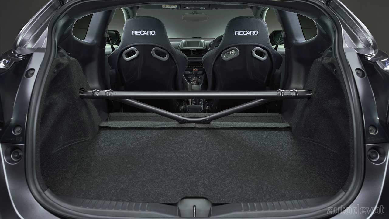 So, how is the GRMN Yaris different from the GR Yaris? Well, I’m glad you asked that question. It is of course, not just the extra two letters. The hotter hatch is wider by 10 mm and rides 10 mm lower. It is also about 20 kg (44 lbs) lighter, thanks to the usage of CFRP content such as the hood, roof and rear spoiler (a normal one), and deletion of the rear seats. In addition, the number of spot welds has increased by 545 compared with the “regular” GR Yaris, and body rigidity has been further enhanced by applying 12 metre longer structural adhesive.