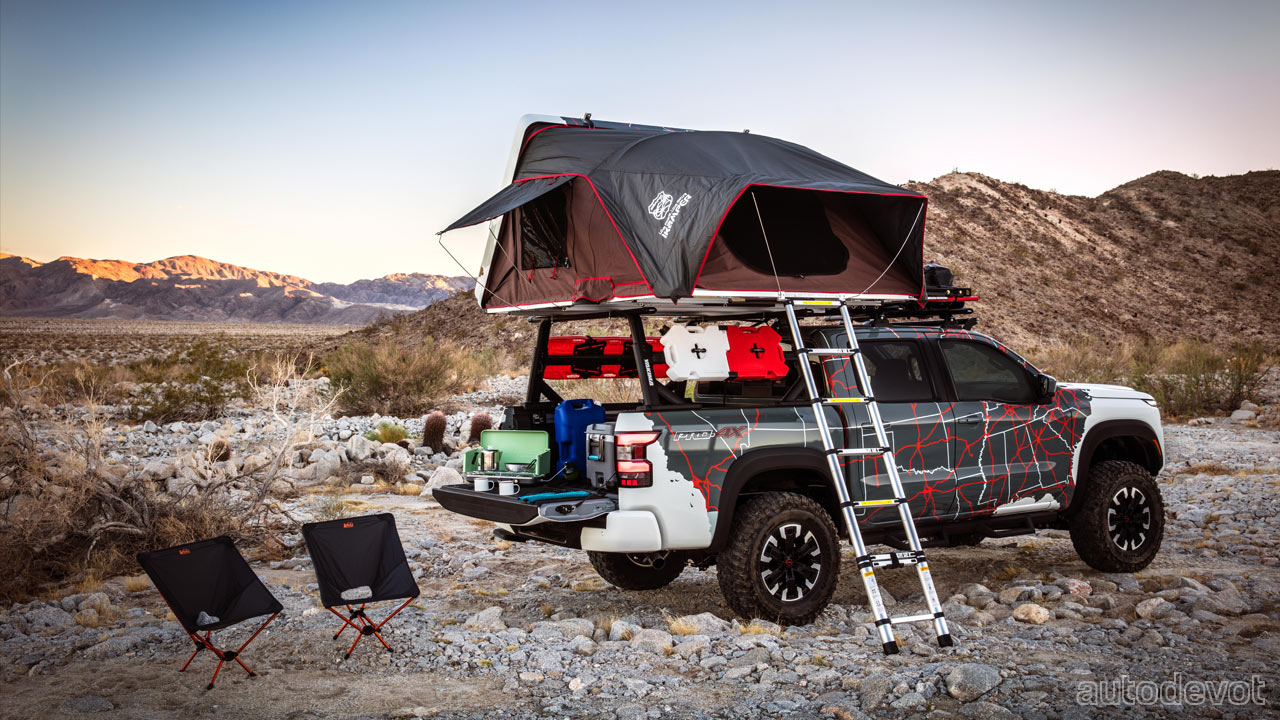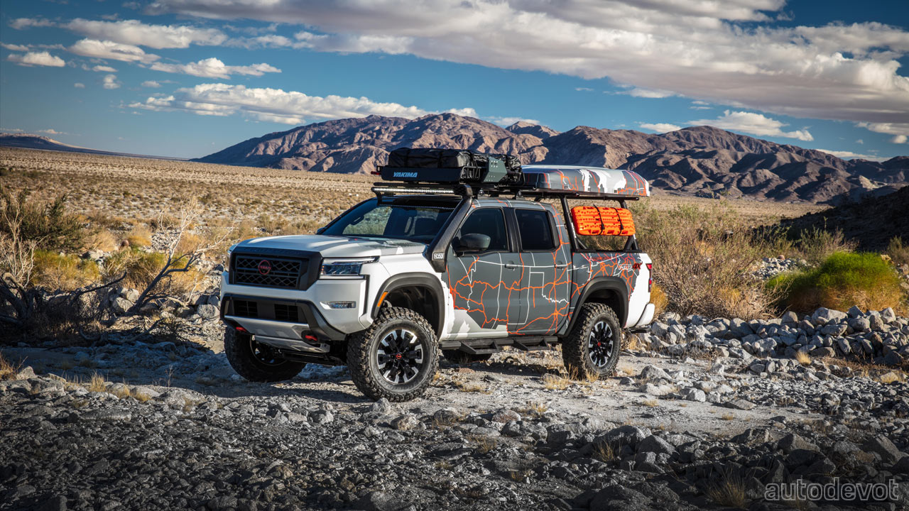 Finally, we have the Project Adventure, which is NDA’s take on the popular overlanding trend. It is based on the Frontier Crew Cab PRO-4X grade, and features a 5-inch lift kit, 34-inch mud-terrain tires, Yakima bed rack system, Yakima LoadWarrior roof basket, a sky tent, and Kicker Bluetooth bed audio system.
