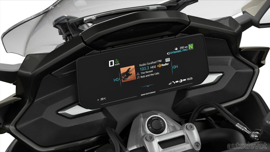 Key features of the new R 1250 RT (featured photo) include LED lighting; a 10.25-inch touchscreen with smartphone connectivity; better speakers; buttons on the side for quick access to functions such as navigation or seat heating; wireless smartphone charging; 3 riding modes (ECO, Rain and Road); Dynamic ESA (electronically adjustable suspension with load compensation); Active Cruise Control; Dynamic Traction Control; Tyre Pressure Monitor; Hill Start Control; ABS Pro, and more. It is powered by a 1,254 cc two-cylinder engine that pumps out 100 kW (136 metric hp) and 143 Nm (105 lb-ft) of torque, paired with a 6-speed gearbox.