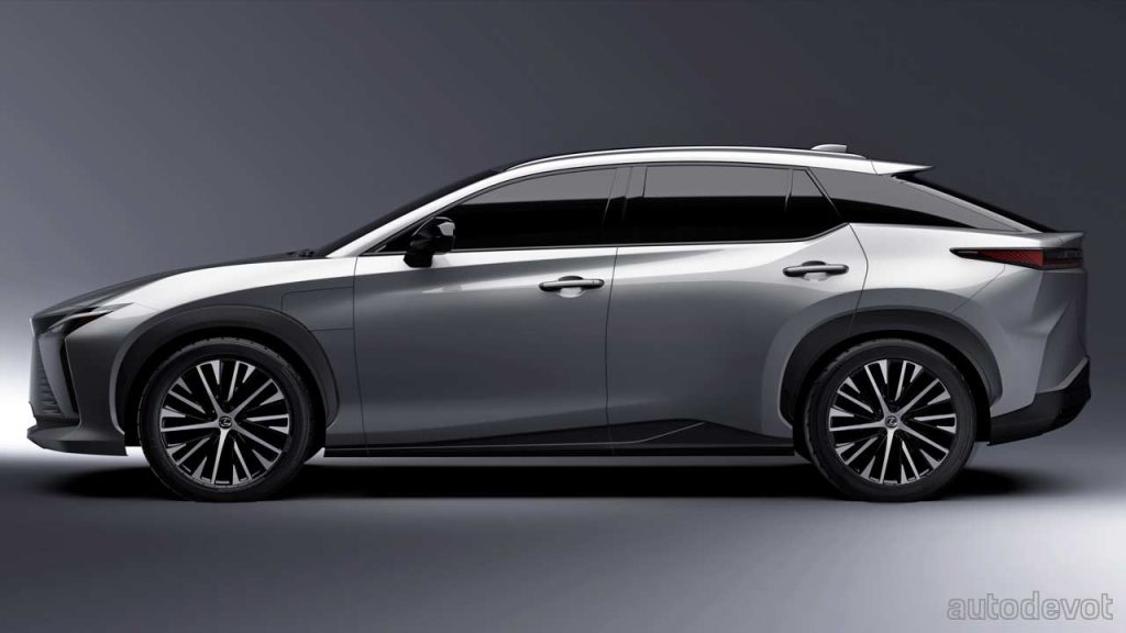 For those who couldn’t figure out, the RZ 450e is a Lexus-ized version of the Toyota bZ4X and Subaru Solterra. While the front fascia gives off a pretty good hint, I think the rest of the car manages to look fairly unique. The side profile looks rather busy with its creases and kinks, as does the rear fascia with its curtains and an upswept tailgate; not completely sure if those air curtains/outlets are functional. But I think it has to be appreciated how the designers have created a unique taillight design compared with bZ4X and Solterra. Also, it appears that the RZ 450e rides slightly lower than its cheaper siblings.
