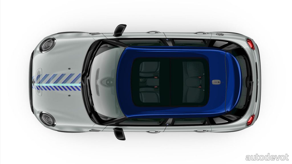 On the exterior, the Mini Brick Lane Editions are finished in White Silver Metallic—which is contrasted perfectly with a Soul Blue roof, black mirror caps and subtle chrome application. The bonnet and the lower section of the doors feature the Brick Lane graphics in a combination of Frozen Blue, Mint and Soul Blue. The front fenders feature a Brick Lane logo. A panoramic moonroof and 17-inch ‘Tentacle Spoke’ black wheels are also part of the features list.