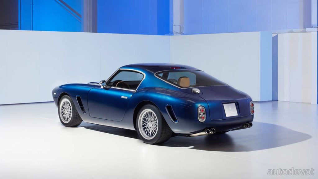 The carbon-composite body of the first example is finished in some kind of a dark blue. The paintwork’s rich lustre is thanks to the layers of a special carbon primer, a regular primer and a silver base coat. In case you missed the story last time, the underpinnings come from a Ferrari 550. Despite having a light-weight re-construction, RML estimates the tribute car’s kerb weight to be about 1,700 kg (3,748 lbs), but it’s probably something to do with safety. Speaking of the safety of the carbon-composite construction, RML said that its “own roof-crush test produced figures well within the permissible displacement after a 23.9 kN load was reached in a roll-over simulation.” But you’ll be happy to know that the tribute car is gonna be lighter than the donor car, the 550.