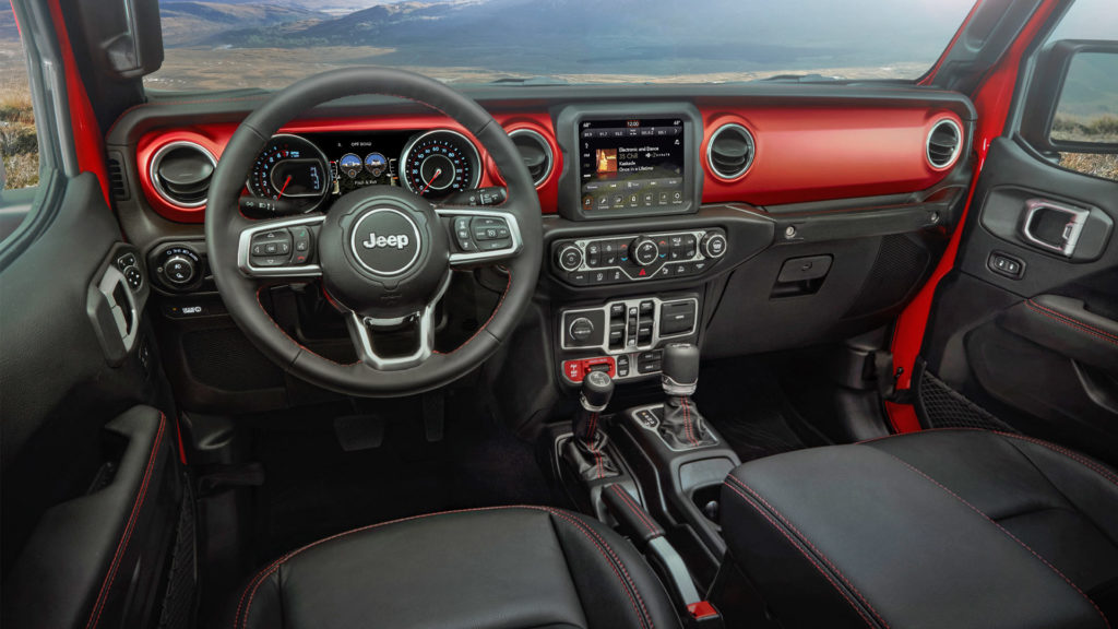 - Uconnect 4C with 8.4-inch radio, navigation, and nine Alpine speakers standard on Overland, Rubicon and Mojave