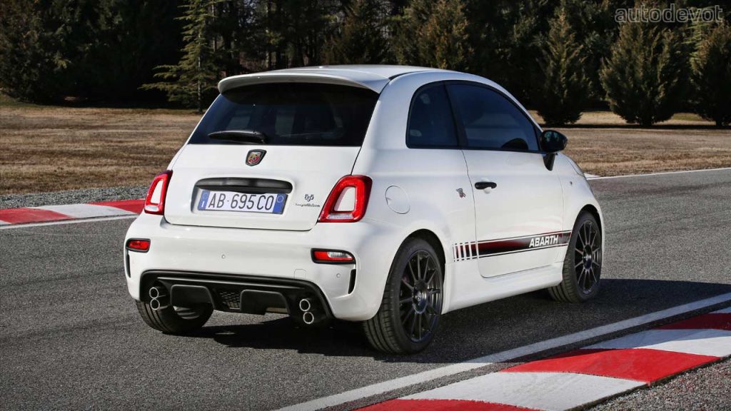 The 695 Competizione gets a Record Monza Sovrapposto exhaust system with titanium pipes; mechanical limited-slip differential, and carbon-shelled Sabelt seats with red contrast stitching. The rest of the features are carried over from the regular Abarth 695, including 17-inch alloy wheels, Koni suspension on both axles, 3D Navigation, automatic climate control, and materials including Alcantara and carbon fibre. The F595 also gets a Record Monza Sovrapposto exhaust system; a special F595 badge that pays homage to Formula 4; 17-inch alloy wheels, Koni front suspension, 3D Navigation, and automatic climate control.