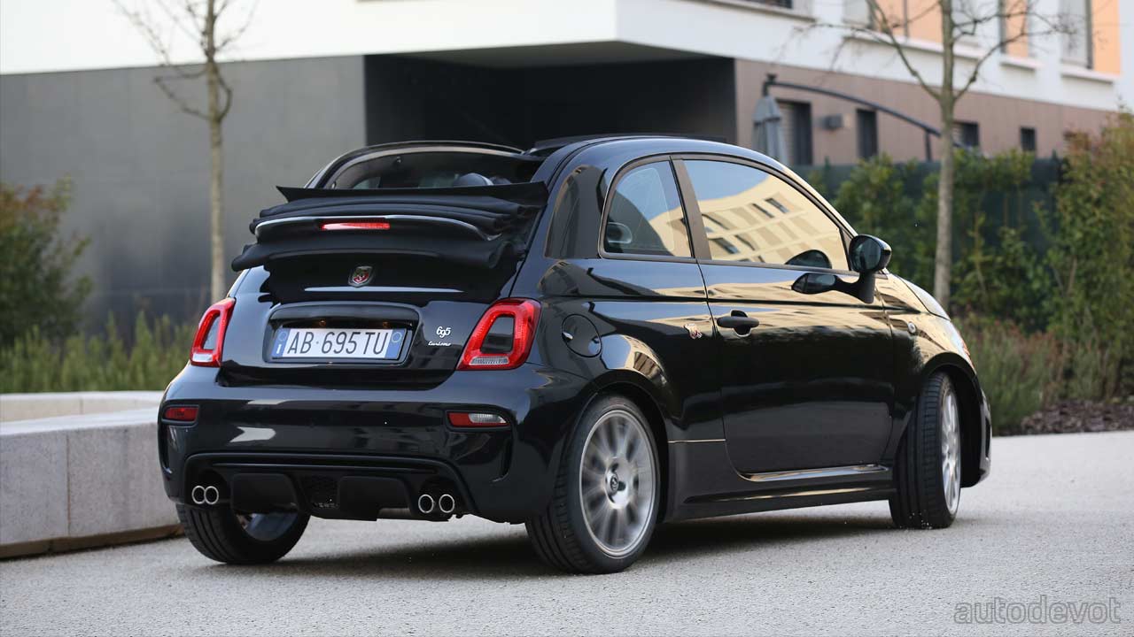 And, one of the options on the 695 includes a rear spoiler which is adjustable by 12 positions, from 0° to 60°. In the maximum inclination position (60°), the spoiler increases the aerodynamic load by up to 42 kg (93 lbs) at a speed of 200 km/h (124 mph), Abarth said.