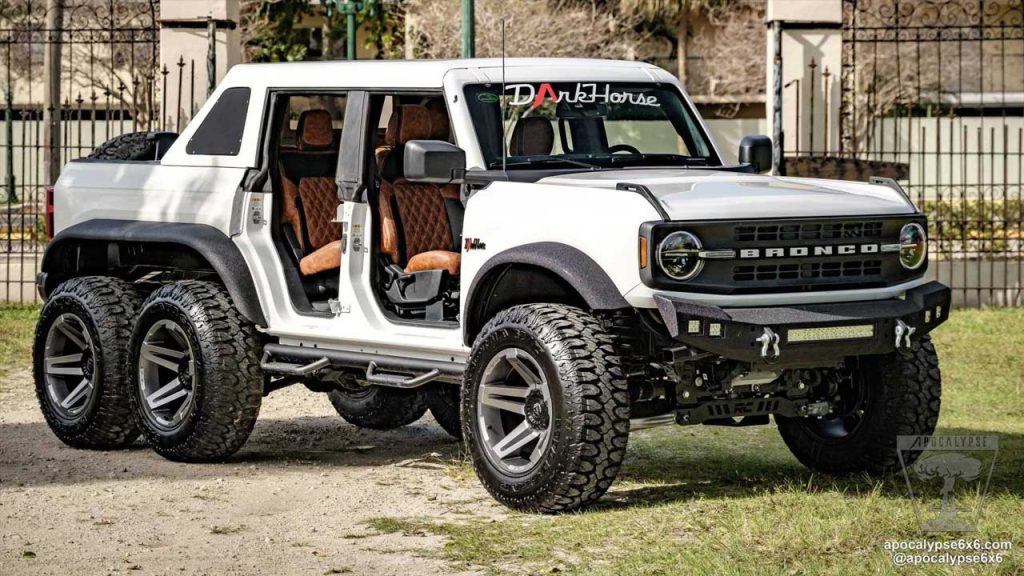 And so, Florida-based 6×6 vehicle maker Apocalypse Manufacturing has taken the new Bronco and transformed it into a 6×6 pickup truck named Dark Horse.