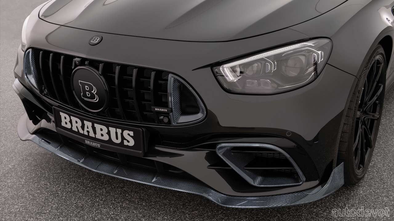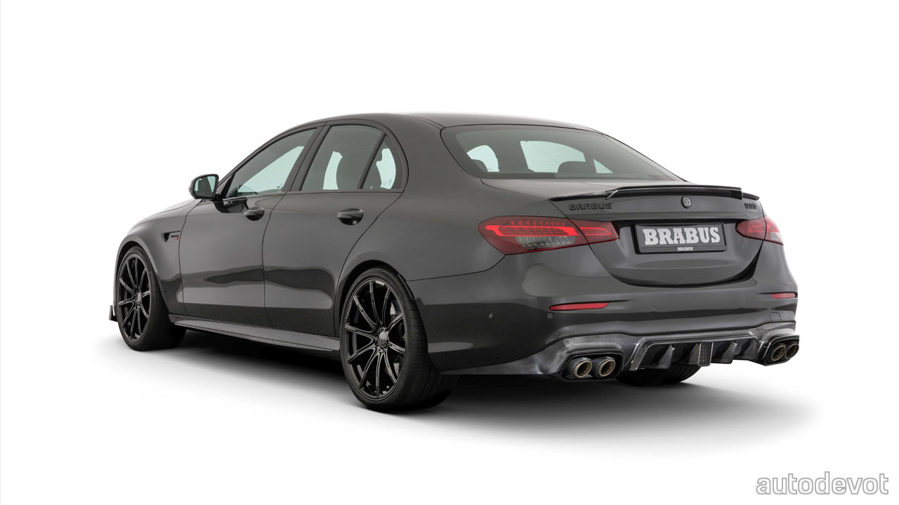 As with the other Brabus 900 models, this AMG E 63 S too packs a 4.5L V8 engine with larger turbos, combined with an exhaust back pressure-reducing stainless-steel high-performance exhaust system. The results are 662 kW (900 metric hp) and a peak torque of 1,250 Nm (922 lb-ft). But the torque is limited to 1,050 Nm (774 lb-ft) to show some mercy on the gearbox. Brabus claims a 0-100 km/h (62 mph) sprint time of 2.8 seconds, while the top speed is limited to 330 km/h (205 mph) to show some mercy on the tyres.