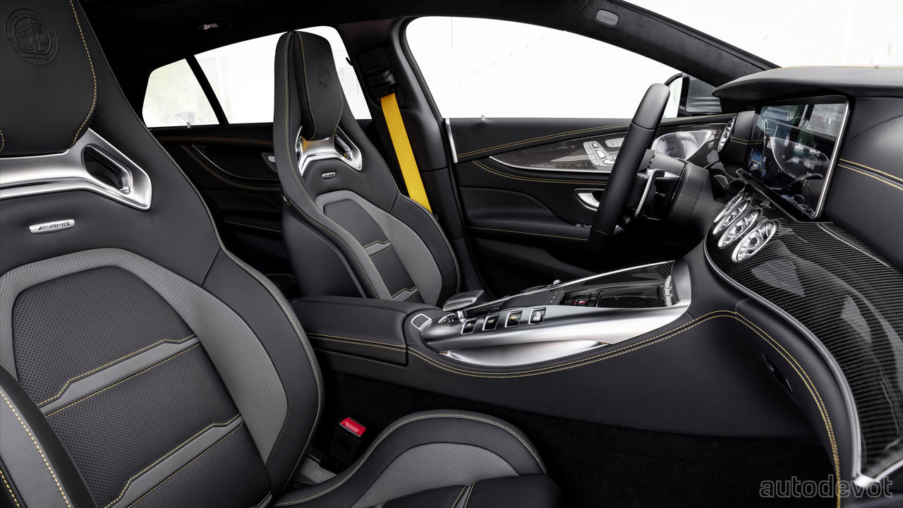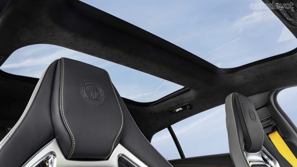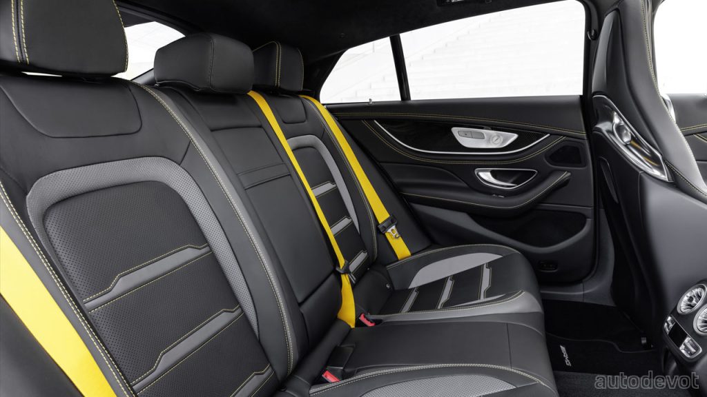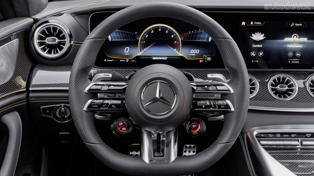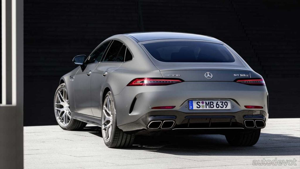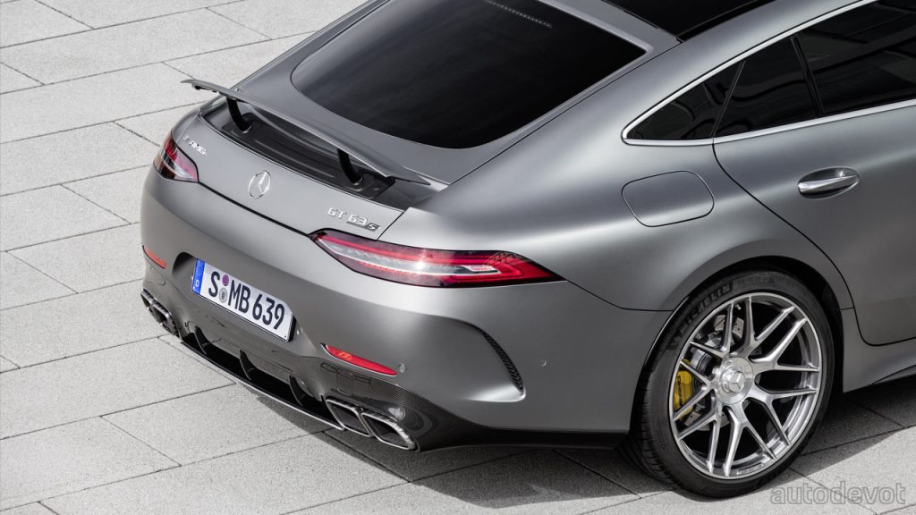 So, what’s new for 2022? Well, good question, indeed. But you do get a sportier front bumper compared with the original GT 63 4-door models, and at the rear, you have trapezoidal tailpipes as opposed to circular ones in the original. Two new exterior body colors Spectral Blue metallic and Spectral Blue magno join the palette, while there’s a €21,777 special edition that offers AMG green light magno paint, in addition to AMG Night Package content, 21-inch AMG forged wheels, exclusive Nappa leather upholstery in grey/black, and some more.