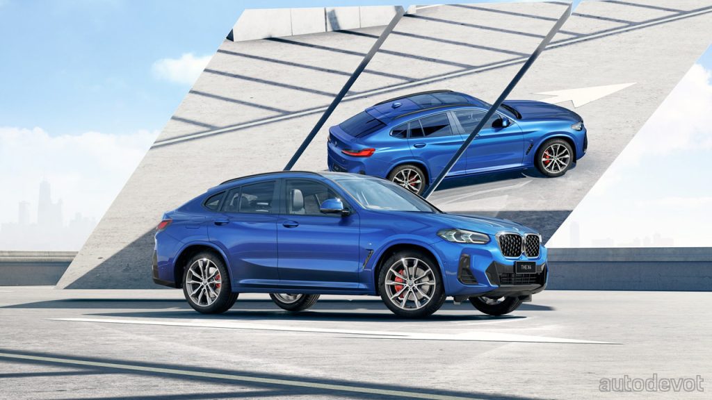 No mechanical changes. The X4 xDrive30i is powered by a 2.0L 4-cylinder turbocharged petrol engine with 185 kW (252 metric hp) and 350 Nm (258 lb-ft) of torque, while the X4 xDrive30d is powered by a 3.0L straight-six turbocharged diesel engine with 195 kW (265 metric hp) and 620 Nm (457 lb-ft) of torque. Both engines are coupled with an 8-speed ZF automatic transmission and AWD system.