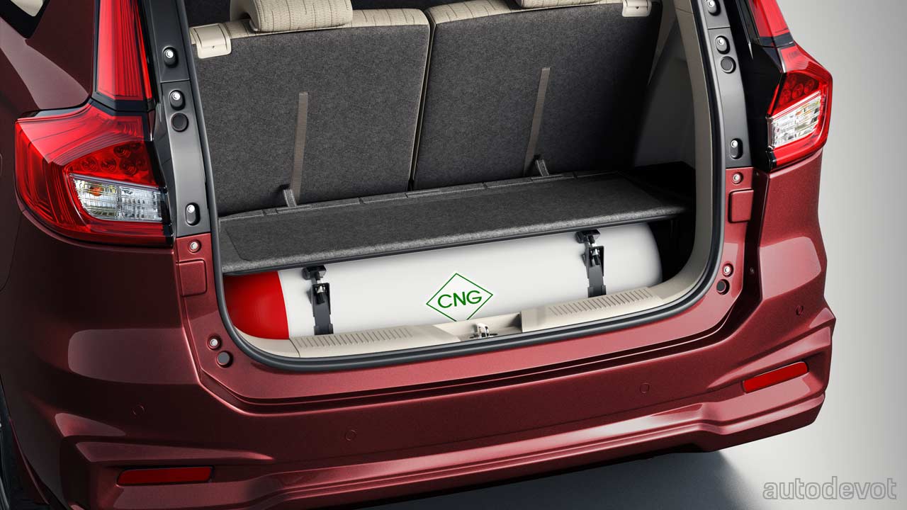 The Ertiga is powered by a 1.5-litre 4-cylinder K15C engine, available in petrol and CNG variants. The petrol variant offers 75.8 kW (103 metric hp) and 136.8 Nm (101 lb-ft) of torque, while the CNG offers 64.6 kW (88 metric hp) and 121.5 Nm (90 lb-ft) of torque. The petrol can be paired with either a 5-speed manual or a 6-speed automatic transmission (4-speed auto in the past), while the CNG is available only with a 5-speed manual transmission.