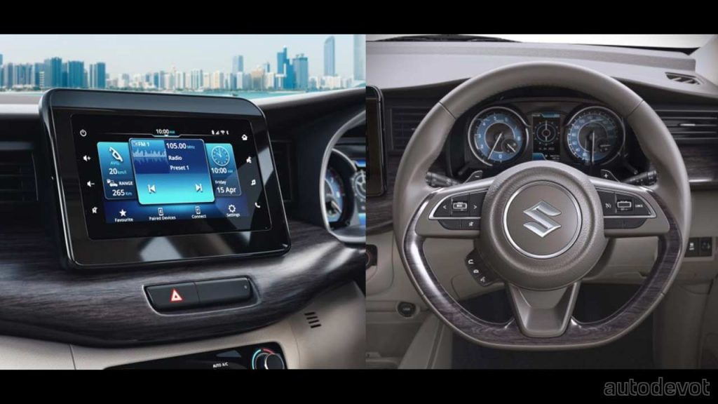 Inside, you get a 7-inch SmartPlay Pro central touchscreen, Apple CarPlay & Android Auto connectivity, 4 speakers, auto AC, second-row roof-mounted AC vents, cruise control, and more. The ZXi models get Suzuki Connect connected car features with remote functionalities. Download the brochure here.