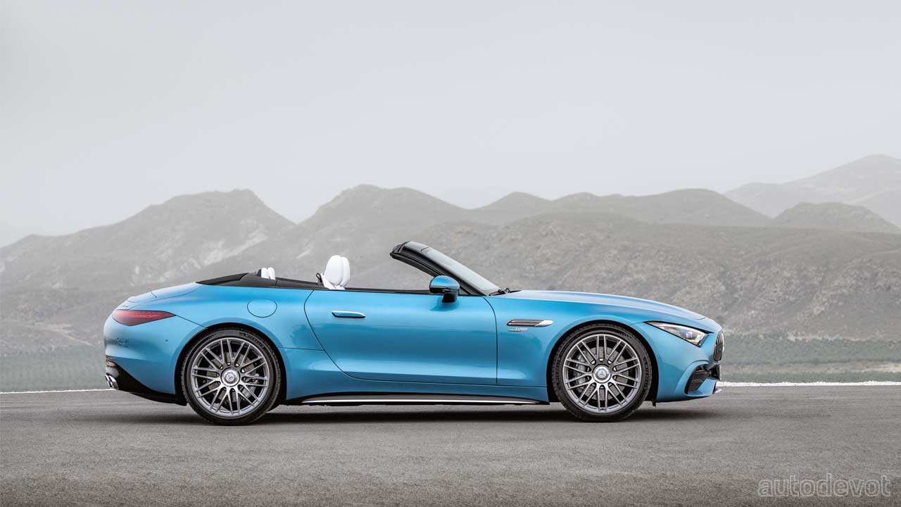 Moving on to the business end of the story then, the SL 43 packs an M139 2.0-litre (1,991 cc) 4-cylinder petrol engine coupled with what is billed as an electric exhaust gas turbocharger derived from Formula 1. With that, the new SL 43 is claimed to be the first production car in the world to pack such a turbo.