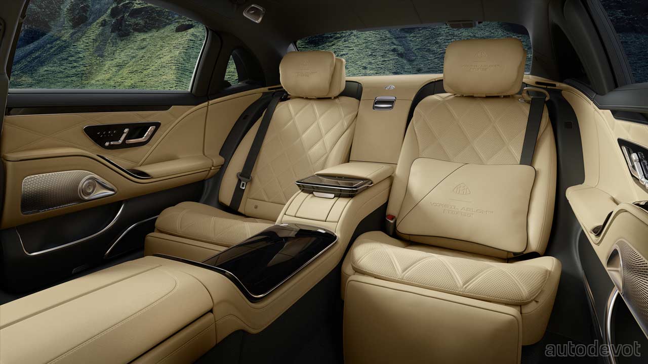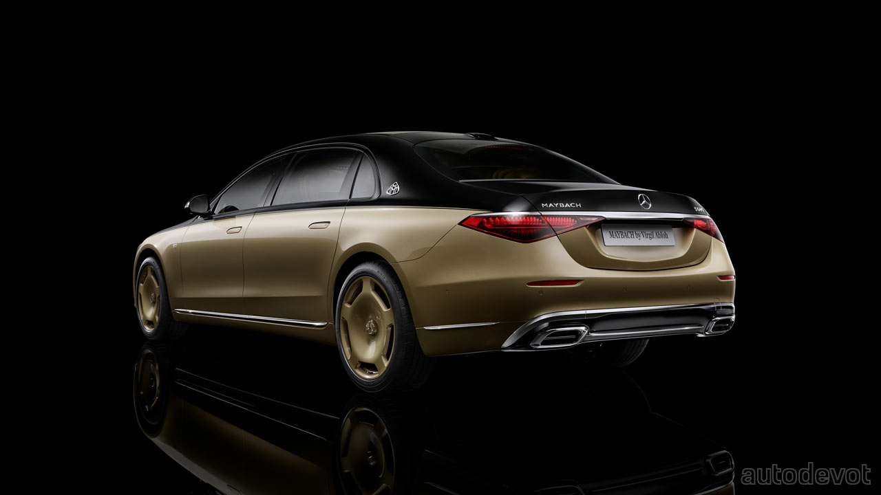 Based on the Maybach S‑Class S 680, the limited edition model follows the same color theme as the aforementioned concept. On the exterior, the upper part of the body is in a glossy obsidian black, while the lower part including the forged rims is painted in a sand hue. The four-seat luxurious cabin continues the theme with sand-colored Nappa leather in combination with black elements.
