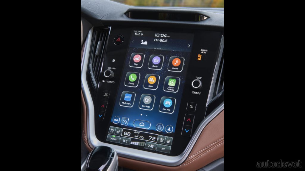 Inside, the latest version of Subaru Starlink 11.6-inch touchscreen comes with wireless Apple CarPlay & Android Auto connectivity. And apparently, the updated system now offers improved on-screen controls for audio, HVAC and vehicle functionalities. Other key features depending on the trim include a 10-way power driver seat with lumbar support, dual-zone climate control, Harman Kardon audio system, ventilated front seats and heated rear seats. A 12-way power driver seat with 4-way power lumbar adjustment and heated steering wheel are optionally available.