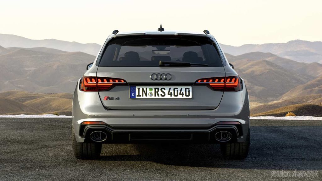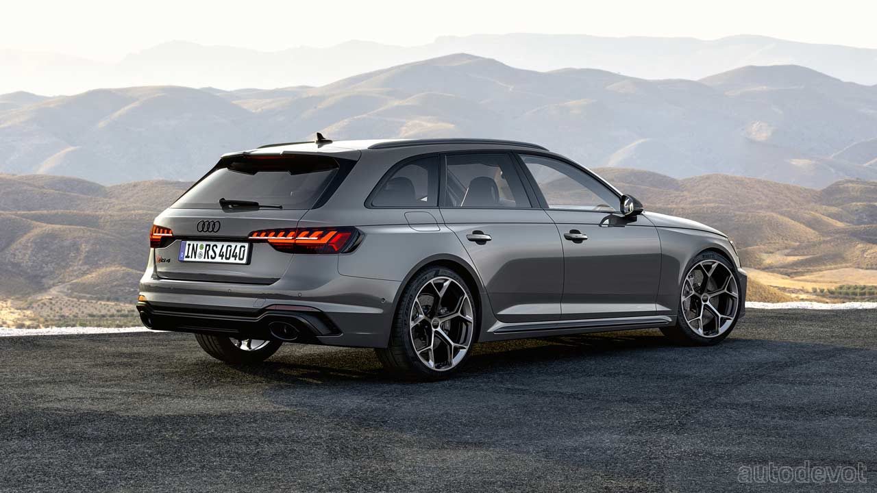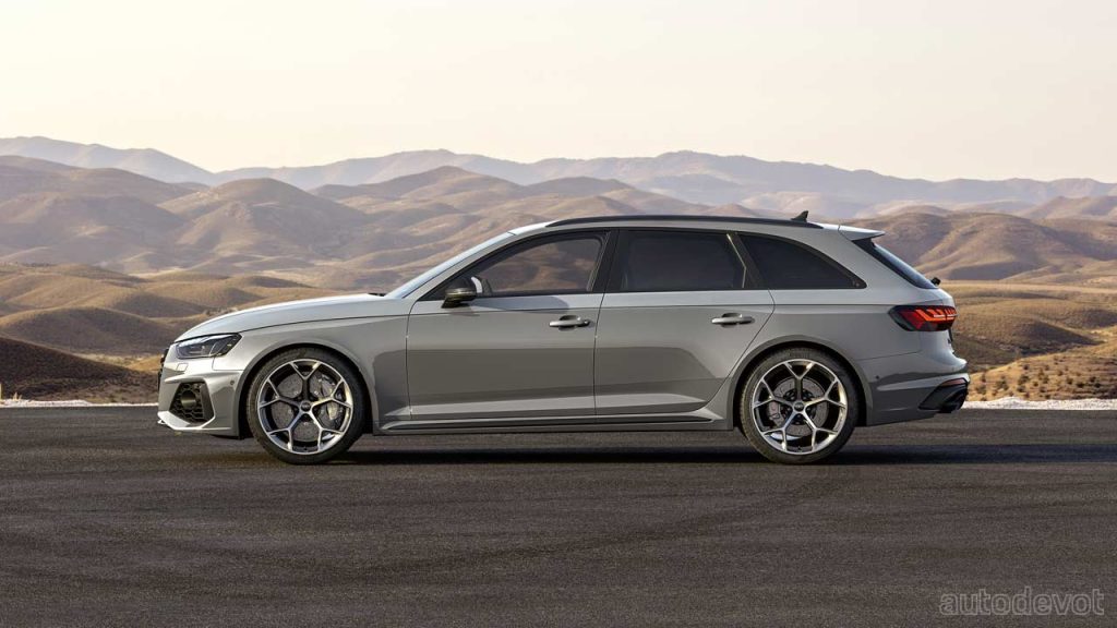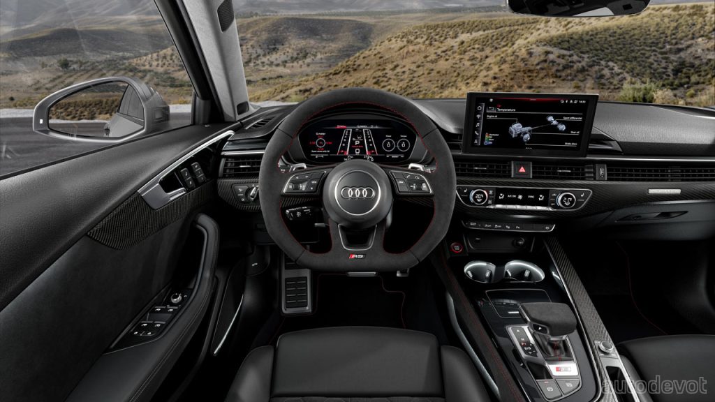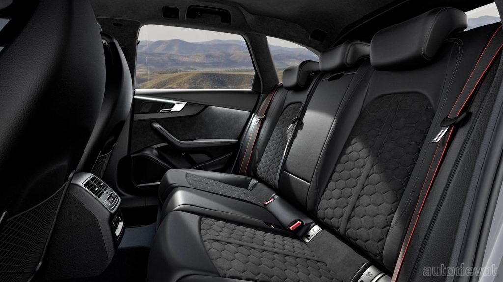 Buyers can also opt for RS sport suspension pro—which offers manually adjustable coilover suspension, with an overall ride height that can be 20 mm lower than the standard RS model. A higher spring rate, 3-way adjustable dampers, and stiffer stabilizers heighten the general driving experience and help shorten lap times, Audi said. Both competition packages also offer an increased top speed of 290 km/h (180 mph). The RS 4 Avant with the competition plus package is claimed to sprint from 0 to 100 km/h (62 mph) in 3.9 seconds, an improvement of 0.2 seconds over the standard.