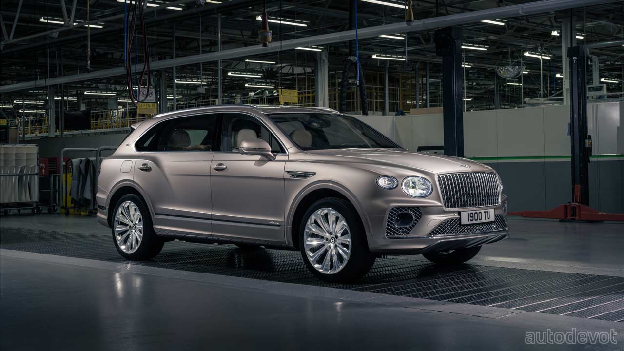 The Bentayga EWB is also being offered as Bentayga EWB Azure and EWB Azure First Edition; the latter is available for the first 12 months of EWB orders. On the exterior, there are blingy elements (including the 22-inch wheels) as opposed to dark and rather subtle elements on the “regular” Bentayga EWB; the First Edition gets a First Edition badge on the D-pillars, of course. Also, notice the Azure badging on the front doors.