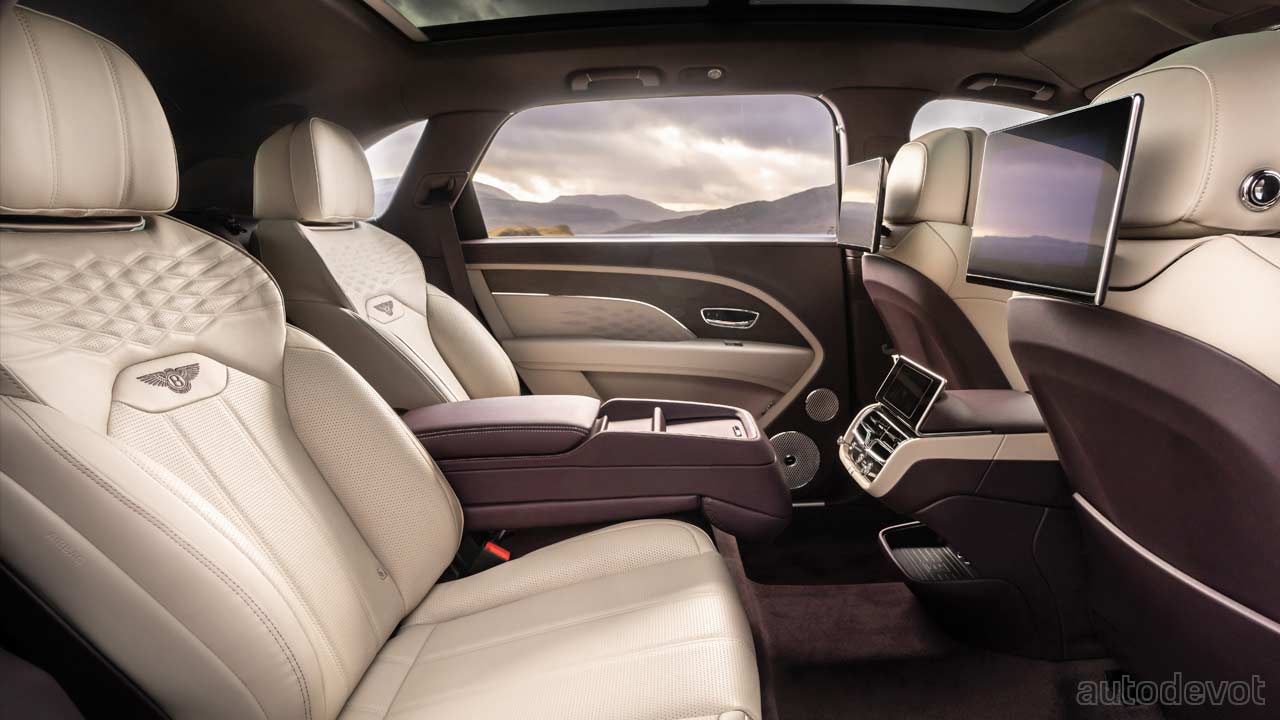 As for the juicy bits of the story, the Bentayga EWB packs a 4.0-litre V8 biturbo petrol engine with 404.5 kW (550 metric hp) and 770 Nm (568 lb-ft) of torque. The official performance figures for those who care, are 0-100 km/h (62 mph) sprint time of 4.6 seconds and a top speed of 290 km/h (180 mph).