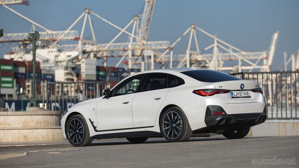 The i4 eDrive40 is powered by a single electric motor at the rear, offering 250 kW (340 metric hp) and 430 Nm (317 lb-ft) of torque. An 83.9 kWh (gross capacity; usable is 80.7 kWh) lithium-ion battery pack is claimed to offer a WLTP range anywhere between 493 and 590 km (306-367 mi). The battery pack can be DC fast-charged with up to 205 kW, but it doesn’t seem like there’s such a charger anywhere in India. But anyway, the car comes with a 11 kW AC charger.
