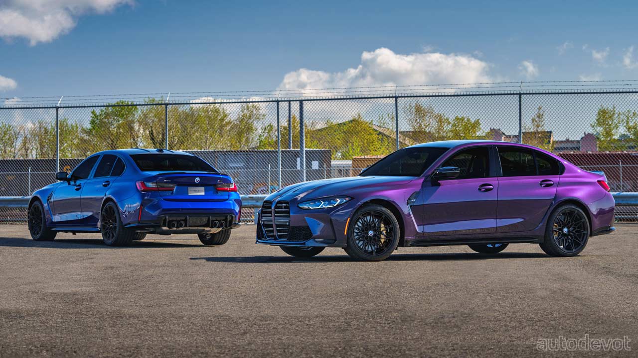 Based on the M3 Competition xDrive variant, the special edition is offered in a choice of five paint finishes with each one paying homage to the previous five generations of M3. The legendary E30 M3 is represented in a vibrant, non-metallic Cinnabar Red; the E36 M3 in a dazzling Techno Violet; the E46 M3 in a Deep Interlagos Blue; E92 M3 (Lime Rock Park Edition) in a Fire Orange III, and the F80 M3 CS in a Limerock Grey. Two of the colors, Techno Violet, and Interlagos Blue, were revived just for this Edition.