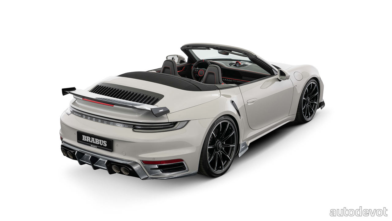 Brabus has shifted its attention from Affalterbach to Stuttgart this time with the Brabus 720 and 820, based on a Porsche 911 Turbo S Cabriolet. The modifications comprise generous carbon fibre decorations and increased output figures.