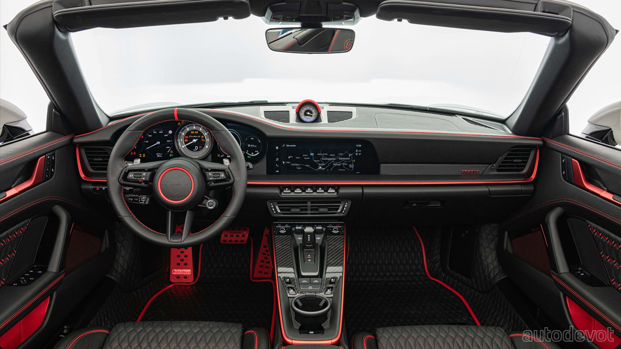 Speaking of which, the carbon fibre elements include a front splitter, front air intake inserts, flaps on the side, rear diffuser inserts, and of course, a new rear wing. The Cabriolet rides on staggered forged wheels measuring 21-inch at the front and 22-inch at the rear. Rounding off the visual makeover are height-adjustable sport springs, which can lower the vehicle by 25 mm.