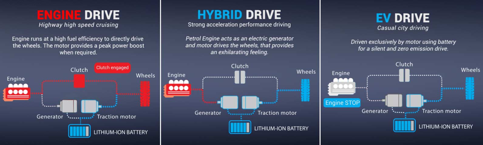 Moving on to the business-end of the story then, the hybrid powertrain is a combination of a 1.5-litre 4-cylinder Atkinson cycle petrol engine, two electric motors (a traction and a generator), an e-CVT and a small lithium-ion battery pack. The ICE offers 72 kW (98 metric hp) and 127 Nm (94 lb-ft) of torque, while the electric traction motor offers 80 kW (109 metric hp) and 253 Nm (187 lb-ft) of torque. The combined output, however, is 93 kW (126 metric hp).