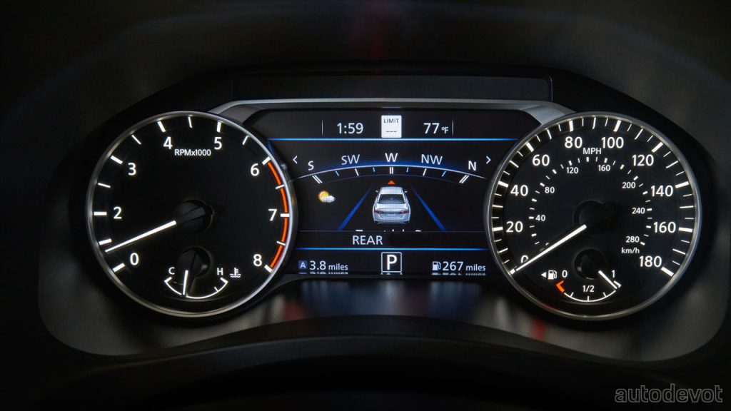 The styling revisions are mainly on the front fascia with a redesigned V-Motion grille that houses the new Nissan logo; redesigned bonnet to match the new grille design; redesigned front bumper, and four new aluminum-alloy wheel designs that range between 17- and 19-inches depending on the trim. The SR trims boast a sporty black chrome grille frame with a unique grille pattern that differentiates it from the other trims. LED headlights are now standard and come with integrated turn signals which double as daytime running lights. It appears that the front fog lights on the bumper have been let go. A single-panel moonroof can be found in the options list.