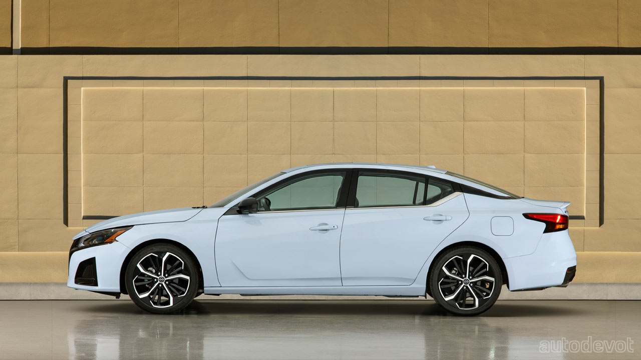 Nissan has updated the Altima sedan for 2023 for the U.S. market, with styling revisions and upgraded onboard technology. Pricing will be announced closer to its launch date this fall. The 2023 Altima lineup includes 8 trims: S FWD, SV FWD, SV AWD, SR FWD, SR AWD, SL FWD, SL AWD and SR VC-Turbo FWD.