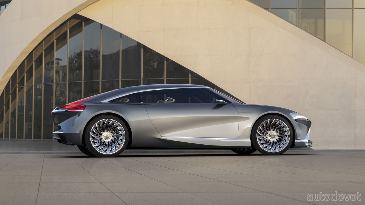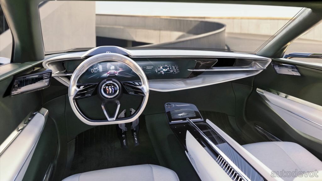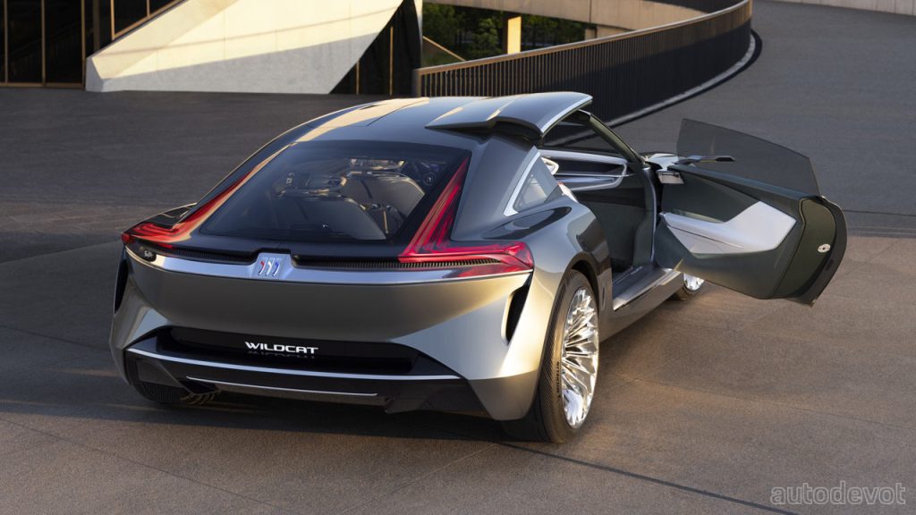 Which means, you might not necessarily see a production version of the Wildcat EV, but some of its styling cues, features and technologies might get adopted to a future series-production model. The styling is significantly different from the latest Buick models and certainly looks very different from the Electra concept we saw in fall 2020. The new fascia gets an L-shaped lighting signature and a rather low-mounted trapezoidal grille. The side profile looks a bit retro but clean, and features a floating roof effect with just the right amount of chrome application, while the rear-end gives off a shooting brake vibe. Notice how the taillights are sorta kinda embedded into the rear pillars. And of course, we’ve to talk about those doors; notice how the roof panels rise up a li’l bit to make ingress and egress easy.