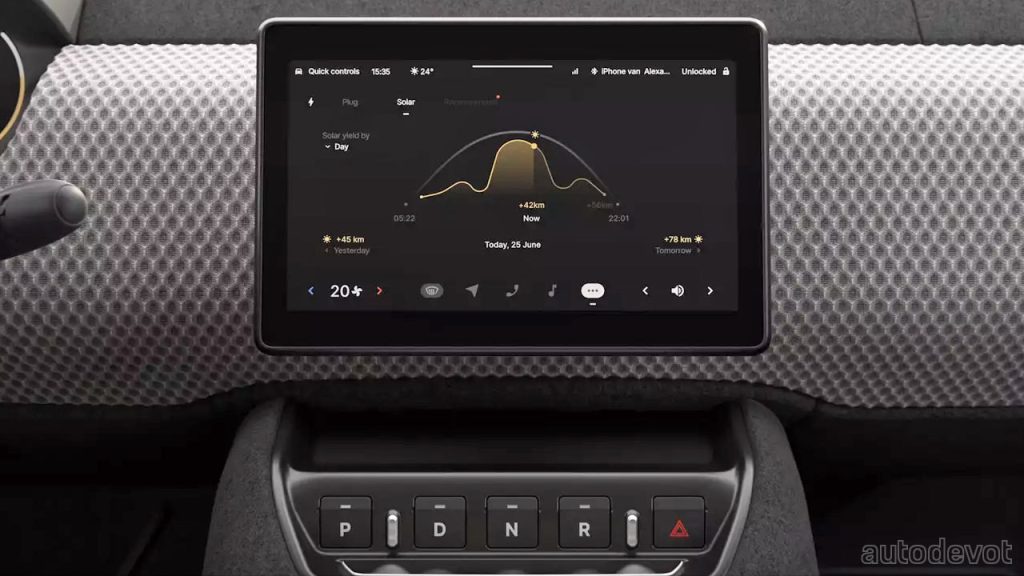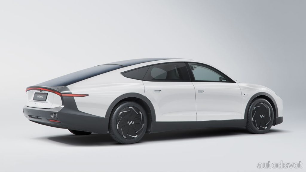 While the overall silhouette remains unchanged from what we saw earlier this year, there are some subtle changes—especially on the front fascia with a revised headlight and bumper design. On the side, there are recessed door handles as opposed to a button-like contraption we saw before, and notice that the cameras have been moved to just behind the wheel arches. The rest of the vehicle remains mostly unchanged. Those aero covers for the rear wheels are a no-cost option but are claimed to add ~12 km (7.5 mi) of range, so it’s completely up to you to decide whether you want VW XL1-like visual experience or not. But do note that Lightyear claims a drag co-efficient of 0.19 Cd for the 0 (most likely with aero covers included). And, except for the base Zenith Silver paint, the rest of the paint options cost you an extra €5,000.