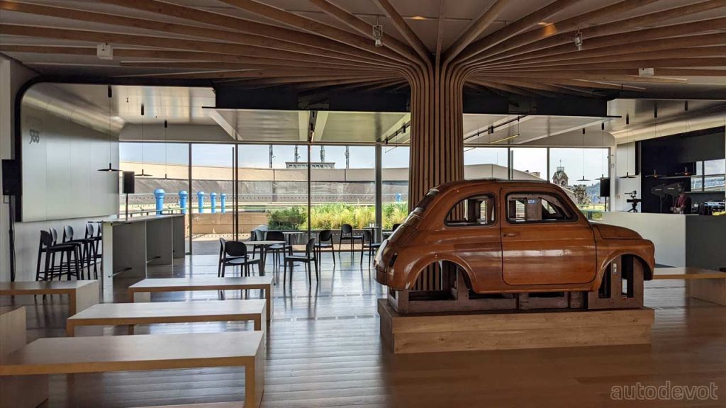 The rooftop has been converted into a garden and the test track has got a new name called ‘La Pista 500’. And as the name suggests, the 1.2 km (0.7 mi) track is now exclusive for test driving the all-electric 500 (Fiat New 500). On the same Lingotto building, there’s an art gallery named Pinacoteca Agnelli, featuring a ship-like steel structure on the top. And on the fourth floor of the Pinacoteca Agnelli, there’s the Casa 500, a museum dedicated to the brand’s icon, the 500.