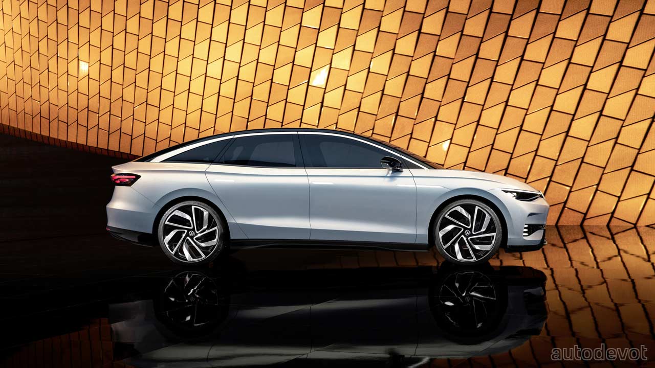 That roofline makes it look more like a 4-door fastback rather than a traditional 3-box sedan, but nobody makes a traditional 3-box sedan these days anyway. But anyway, rounding off the styling are 22-inch two-tone turbine-style rims wrapped with low-profile tyres. VW claims a drag co-efficient of 0.23 Cd. The concept is painted in a Polar Light Blue Metallic with shimmering pigments, contrasted with a high-gloss black roof.