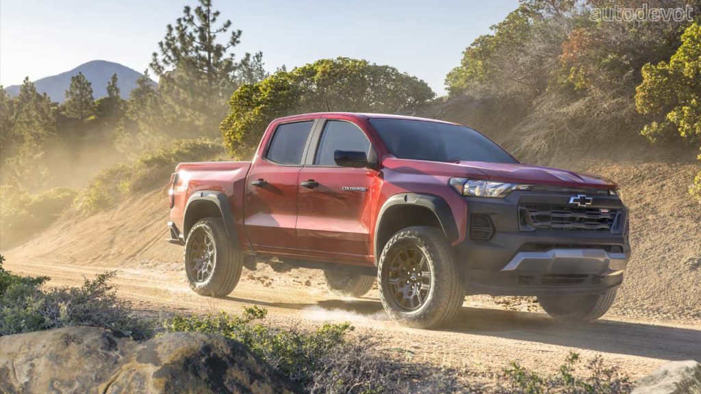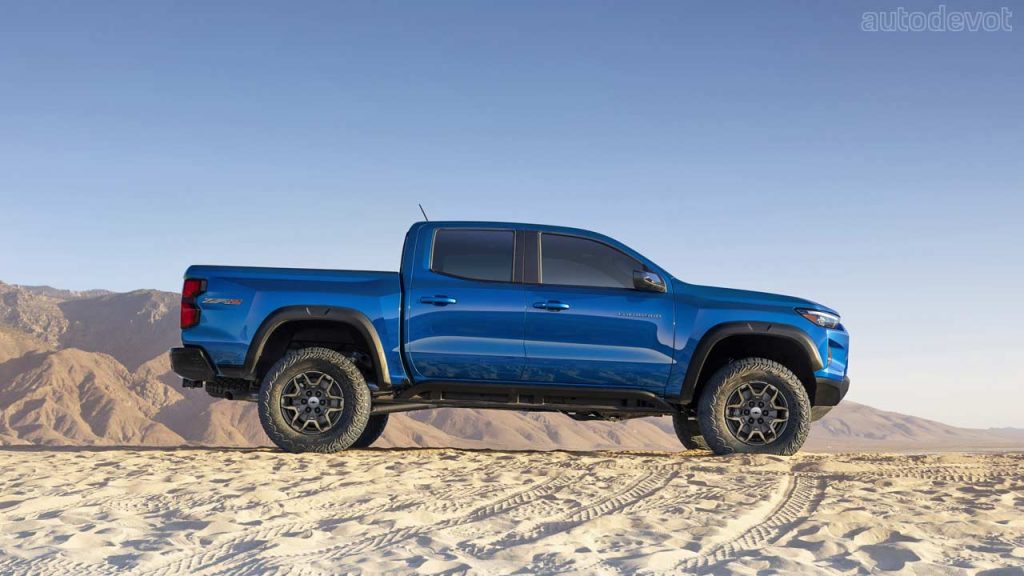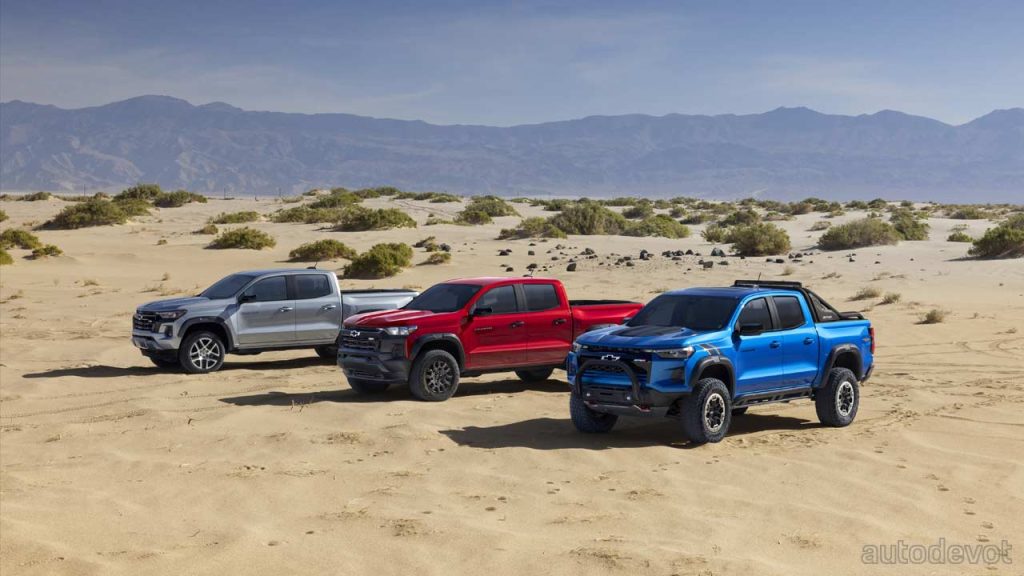 The Chevrolet Colorado pickup truck has been promoted to the third generation with the first-ever Trail Boss and ZR2 trims; upgraded onboard tech, and a 2.7L turbo petrol engine borrowed from the Silverado. The 2023 Colorado lineup is scheduled to go on sale in the U.S. market in the first half of 2023.
