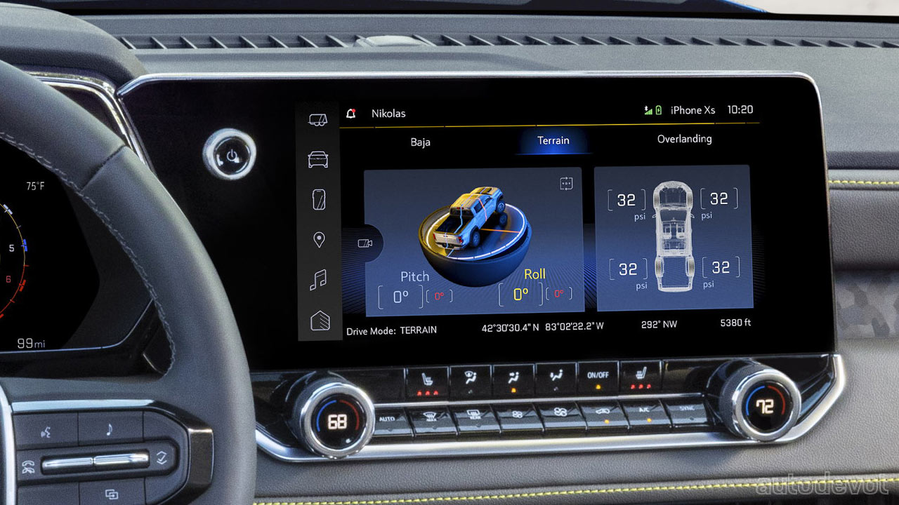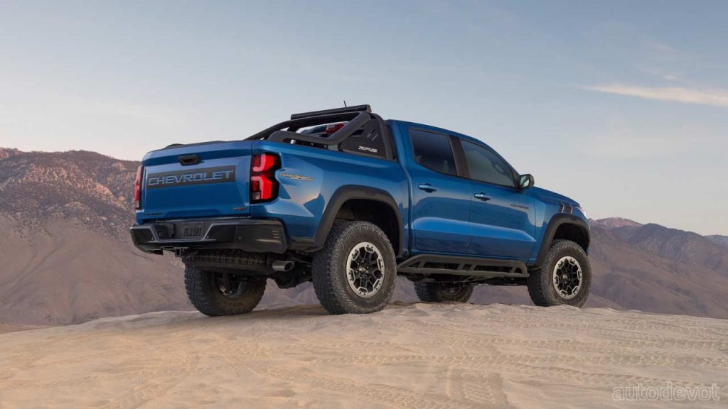 Moving on to the juicy bits of the story, there’s gonna be a 2.7-litre 4-cylinder turbo petrol engine with varying output figures depending on the trim. In the WT and LT trims, it’s gonna offer 177 kW (237 bhp/241 metric hp) and 351 Nm (259 lb-ft). For Z71 and Trail Boss, the output figures are gonna be 231 kW (310 bhp/314 metric hp) and 529 Nm (390 lb-ft). And as for the ZR2, the power output is gonna be the same 231 kW (310 bhp/314 metric hp), but the torque will be 583 Nm (430 lb-ft). The engine is coupled with an 8-speed automatic transmission.