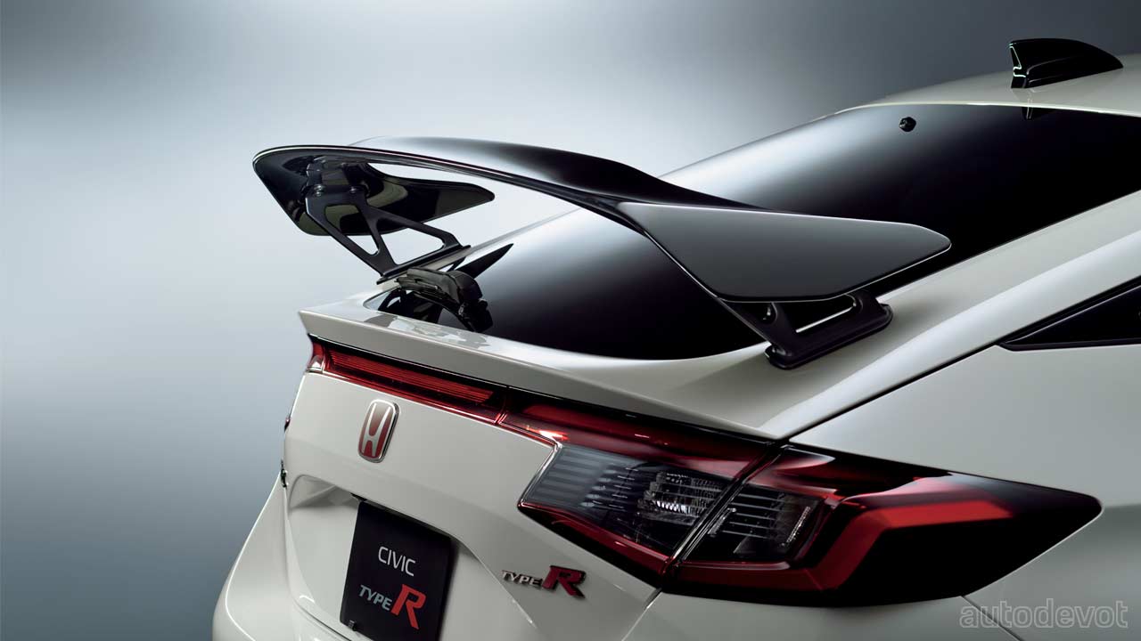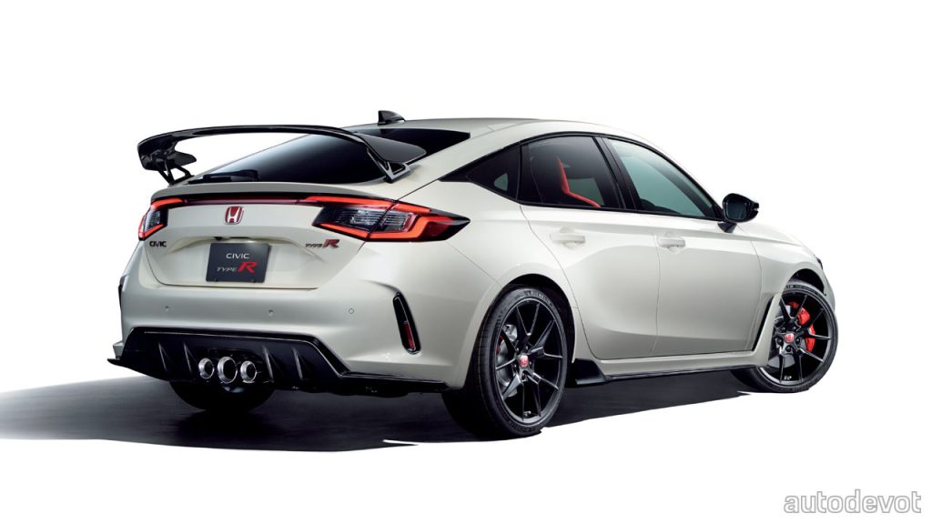 The 2023 Civic Type R sports a honeycomb grille mesh on the front fascia, complemented with a red H badge and a Type R logo on the upper grille. On the side, you can notice the outlet just behind the front wheel arch, and also a fin just in front of the rear wheel arch. As for wheels, they are lightweight 19-inch matte black alloys wrapped with bespoke Michelin Pilot Sport 4S tyres. At the rear, there’s a gigantic wing mounted on aluminium mounts, and down at the bottom, there are triple exhaust outlets housed in a model-specific diffuser.