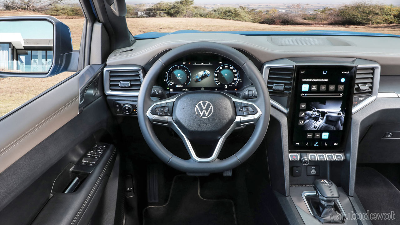 On the inside too, the designers have done a fantastic job in ensuring that the Amarok doesn’t look just like a rebadged Ranger; there are some significant differences here. Key features depending on the trim include a 12-inch touchscreen, a 12-inch driver display, soft-touch dashboard upper part, wireless smartphone charging pad, 10-way electrically adjustable front seats, 8-speaker Harman Kardon audio system, and ADAS such as Adaptive Cruise Control, Intelligent Speed Assist, Dynamic Road Sign Display, Lane Assist, Park Assist and Area View (360-degree camera).