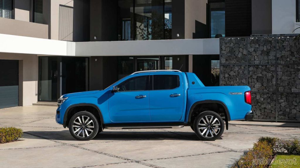 While the wheelbase is the same 3,270 mm, the Amarok is slightly shorter and narrower than its American cousin. Compared with the previous-gen Amarok, the new model boasts increased water wading capability (from 500 to 800 mm) and improved approach, departure and breakover angles of 29-degrees, 21-degrees and 21-degrees, respectively.