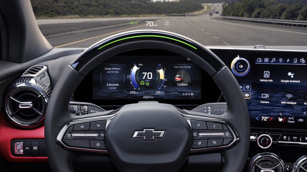 The cockpit design has just as oomph factor as the exterior design, especially in the Blazer EV SS’ black-red dual-tone theme. I hope Mercedes is okay with Chevy stealing those turbine-style air vents. There’s a lot of tech on the inside, obviously. A 17.7-inch touchscreen and a 11-inch driver display is standard across the trims. The Super Cruise hands-free driving tech is an optional extra.