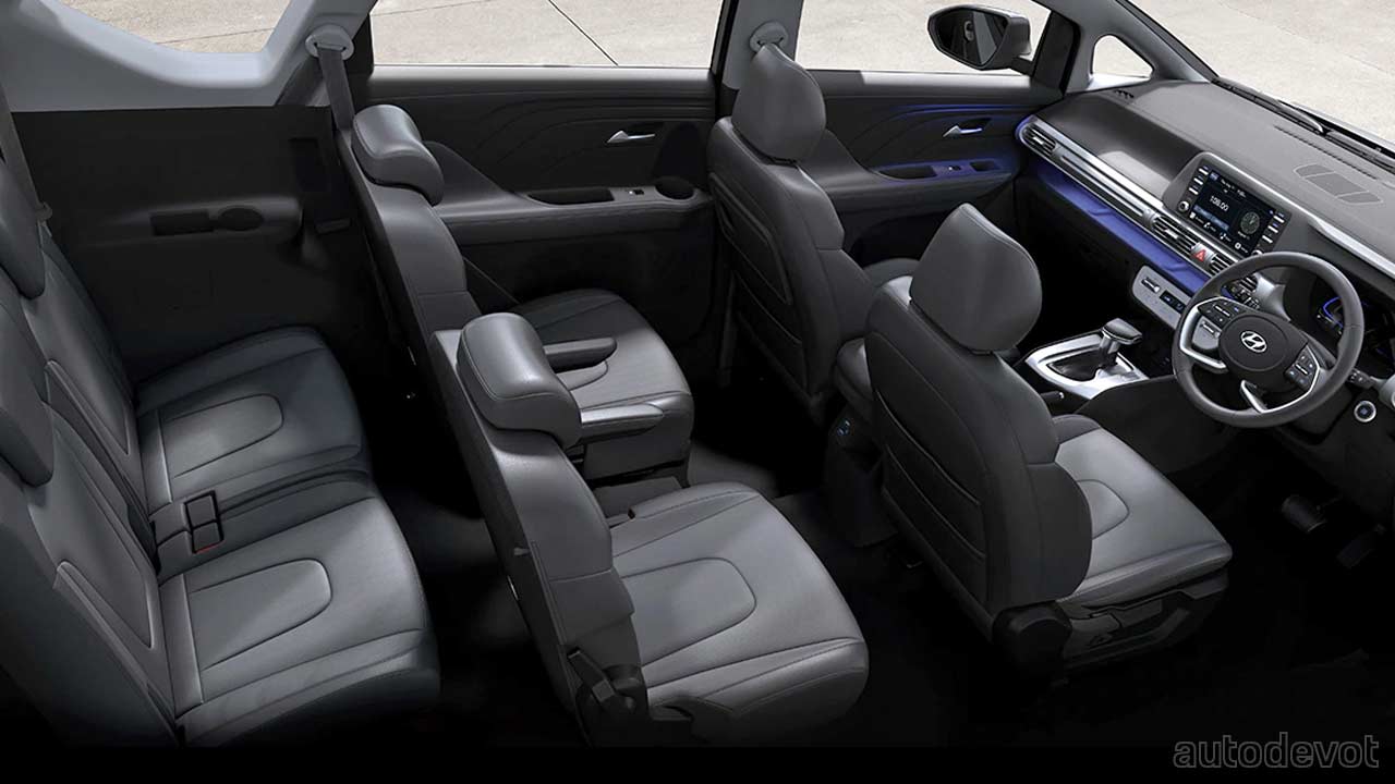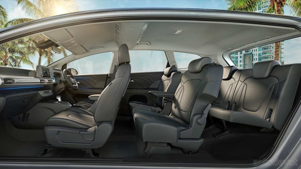 The Stargazer sports a very futuristic exterior design, especially on the front fascia with a running light at the top that not only runs across the entire width of the vehicle but also wraps around the sides a li’l bit. The actual headlights are down on the bumper in a C-shaped housing. The side profile has typical MPV shapes and creases, while at the rear, the light signatures form a huge ‘H’, which is my personal favorite design element. But ironically, the so-called ‘Stargazer’ doesn’t offer a sunroof or a panoramic glass roof in any of the variants, which means you can’t actually do star gazing at night sitting inside the vehicle. And you’ll see why that is in just a few seconds.