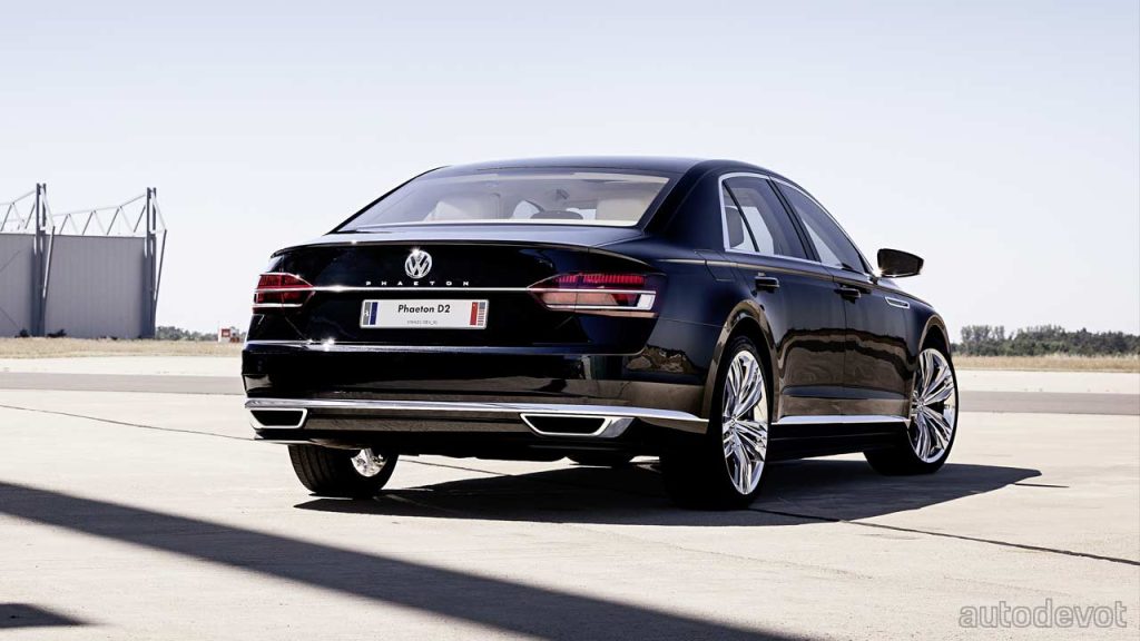 And the secret is that the company had built a fully working prototype of the second-gen Phaeton—called the Phaeton D2, built around the MLB Evo platform that underpins several big VW Group models including the Touareg, Urus, Bentayga, A6, A7, A8 and many others. Of the four different concepts the design team produced, the ones made by Pavone and Bachorski got the nod, and those design cues were implemented into this concept. From the rear-three-quarter angles, the Phaeton D2 looks more like an Audi. At 5.06 metres long, 1.90 metres wide and 1.45 metres high, the D2 measures more or less the same as the model it was supposed to replace.