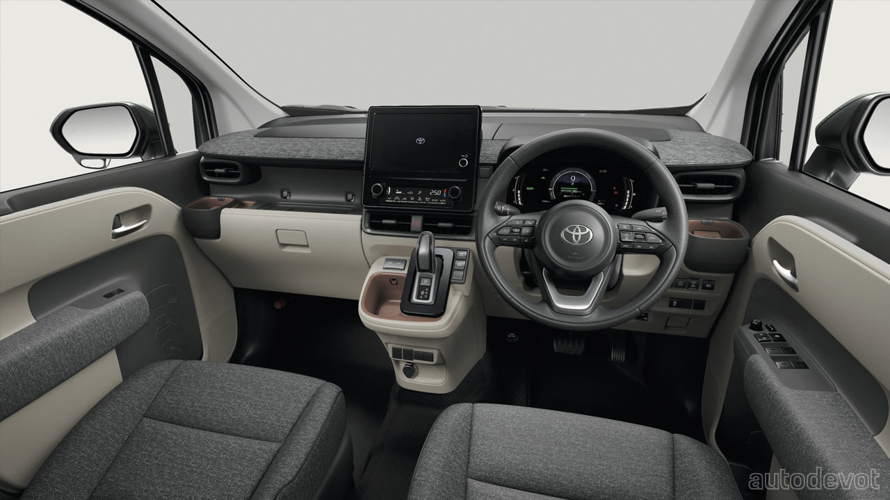 Moving on to the juicy bits of the story, the new Sienta offers petrol and petrol-electric hybrid powertrain options. The regular petrol is a 1.5-litre 3-cylinder naturally aspirated unit (M15A-FKS) with 88 kW (120 metric hp) and 145 Nm (107 lb-ft) of torque, paired with a CVT. The CVT offers a 10-speed simulated shifting experience.